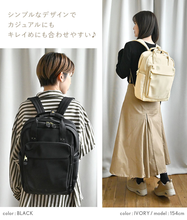 リュック Legato Largo レガートラルゴ レディース 通勤 ナイロン 軽い 10ポケット パソコン 撥水 バックパック A4 PC収納 ナチュらくバッグ リュックサック デイパック 通学 仕事 女性 大人 鞄 キャリーオン 旅行 コンパクト 黒 アイボリー ブラック グレー シンプル 無地