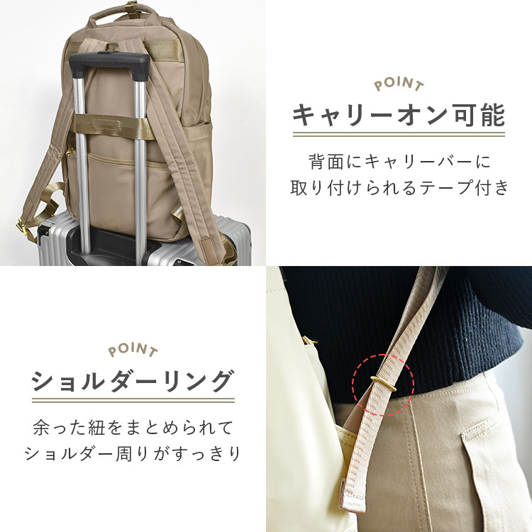 リュック Legato Largo レガートラルゴ レディース 通勤 軽い 撥水 ナイロン A4 ノートパソコン PC 収納 仕事 女性 13インチ 10ポケット キャリーオン リュックサック おしゃれ きれいめ バックパック デイパック コンパクト 大人 ブラック ベージュ グレー 黒 シンプル 無地