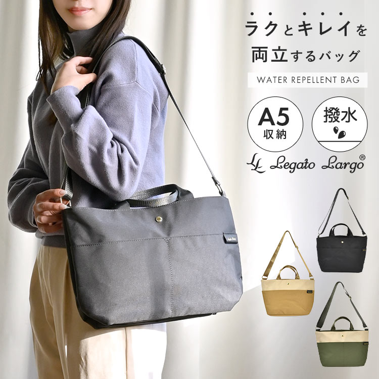 ショルダーバッグ レガートラルゴ Legato Largo レディース 斜めがけ 大人 A5 軽量 かわいい 軽い おしゃれ 大きめ 撥水 両立 肩掛けバッグ 黒 ブラック グレー アイボリー ベージュ オリーブ 通勤 社会人 シンプル 手提げ 収納 ポケット 多い 整理整頓 肩がけ シンプル