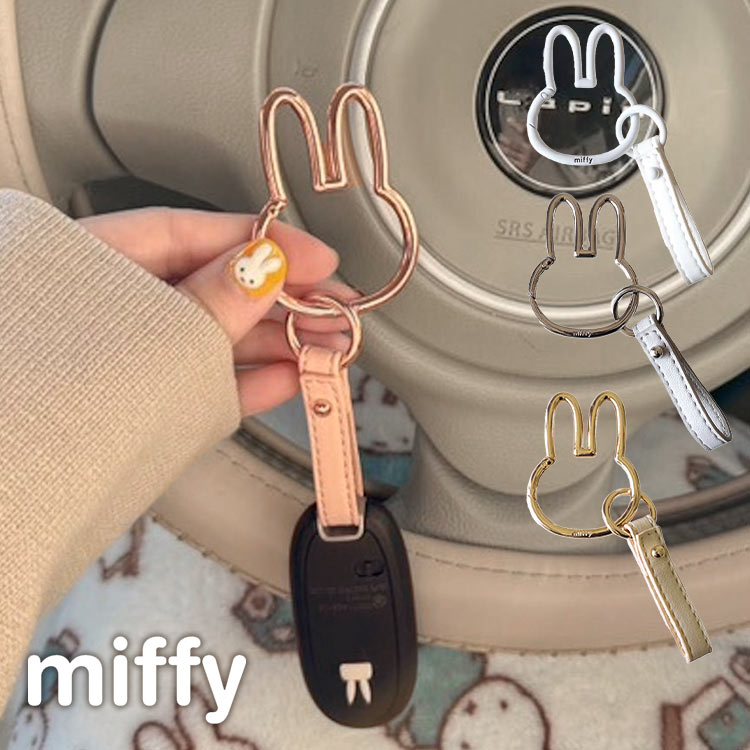スマートキーホルダー ミッフィー miffy キーホルダー カラビナ 車 スマートキー 車の鍵 カギ キーチャーム カー用品 車用品 鍵チャーム 合皮 フェイス 顔 ストラップ バッグストラップ バッグチャーム キャラクター シルバー ピンク ゴールド ホワイト おしゃれ かわいい