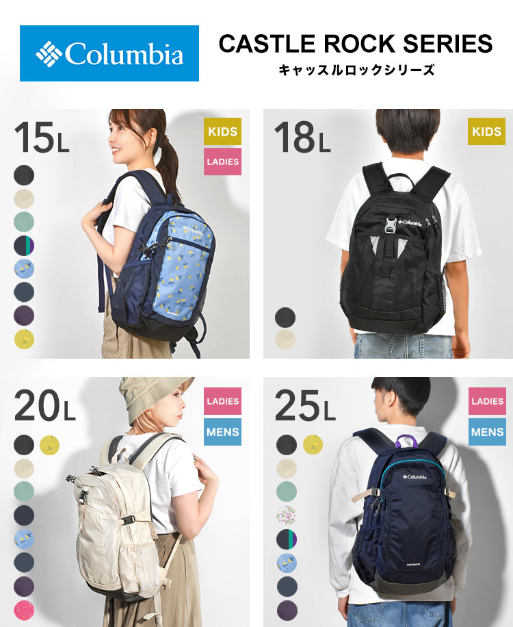 ruck suck カバン バック マザーズリュック 遠足 ザック カラフル 防汚 bag かばん 鞄 バッグパック デイパック デイバッグ マザーズバッグ PCスリーブ タブレット入れ PC入れ PCポケット PC 収納 ポケット 多い 背面メッシュ はっ水 はっすい 頑丈 軽い 大型 無地 ワンポイント ロゴ 社会人 ピクニックトレッキング 遠征 合宿 自然学校 林間学校 帰省 1泊2日 グランピング 山登り 女子高生 女子高校生 男子校生 男子高校生 10代 20代 30代 40代 50代 60代 70代 80代 小学 1年 2年 3年 4年 5年 6年 一年 二年 三年 四年 五年 六年 生 小学校 中学校 高校 大学 小学生 中学生 高校生 大学生 学校 通学 通勤 子ども 子供 こども キッズ ジュニア 息子 娘 孫 女性 女子 女の子 レディース girl 男性 男子 男の子 メンズ boy 父 母 おかあさん おとうさん パパ ママ シニア おじいちゃん おばあちゃん お爺ちゃん お婆ちゃん 祖父 祖母 じいじ ばあば バースデー 誕生日 プレゼント 母の日 父の日 おしゃれ オシャレ お洒落 かわいい 可愛い カワイイ シンプル かっこいい カッコいい カッコイイ Columbia コロンビア リュック PU8664 キャッスルロック 15L バックパック A4 撥水 軽量 丈夫 小さめ リュックサック レインカバー付き アウトドア ブランド 登山 ハイキング 黒 ブラック Castle Rock Backpack キッズリュック コンパクト シンプル 青 水色 黄色 イエロー レッド 一泊二日 日帰り 国内旅行 修学旅行 レジャー キャンプ フェス 部活 防災 多機能