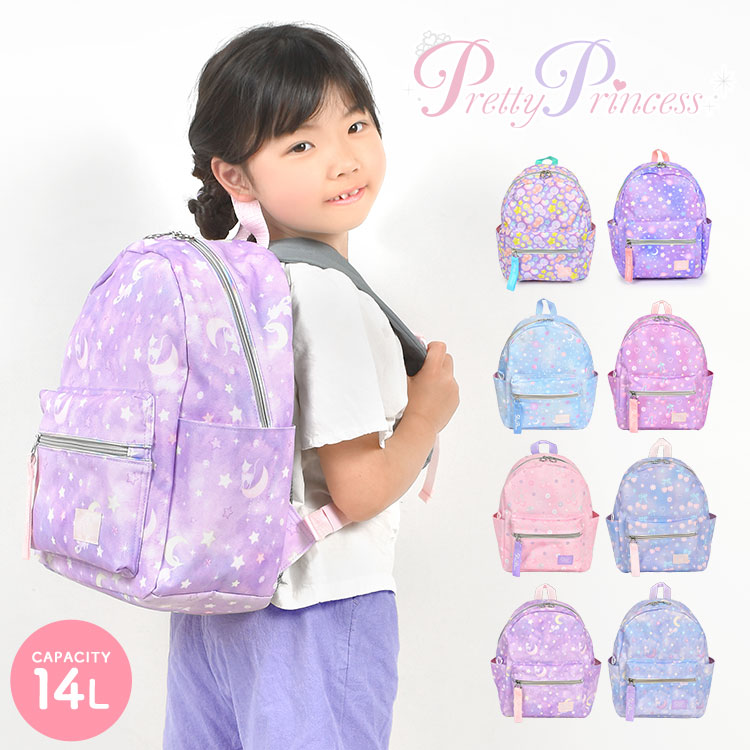 リュック キッズ 女の子 pretty princess 可愛い 小学生 幼稚園 キッズリュック ピンク ラベンダー 水色 リュックサック かわいい 14L プリティプリンセス 子ども A4対応 軽量 ハーネス付き おしゃれ パステルカラー キラキラ 星柄 通園 入学 入園 通園バッグ
