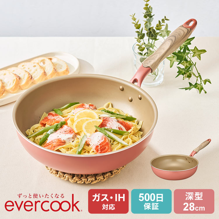 フライパン evercook GREEN エバークック グリーン 28cm 深型 IH ガス EGIDPL28GR 炒め鍋 ドウシシャ DOSHISHA LOW PFAS フッ素 有害物質 PFOS PFOAフリー 安全 軽い 大きめ おしゃれ かわいい くっつかない こびりつかない 焦げ付かない 長持ち 500日保証 ギフト プレゼント