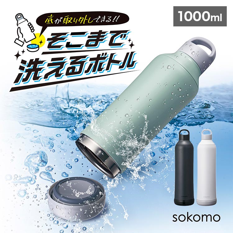 水筒 保冷 800ml そこまで洗えるボトル sokomo 底 洗いやすい ソコモ ドウシシャ DOSHISHA ステンレスボトル 保温 真空二重構造 大きめ 軽い 直飲み 分解できる 魔法瓶 ボトル おしゃれ シンプル 無地 ブラック ブルー ホワイト 黒 白 オフィス 大人 子供 SAMB800 BK BL WH