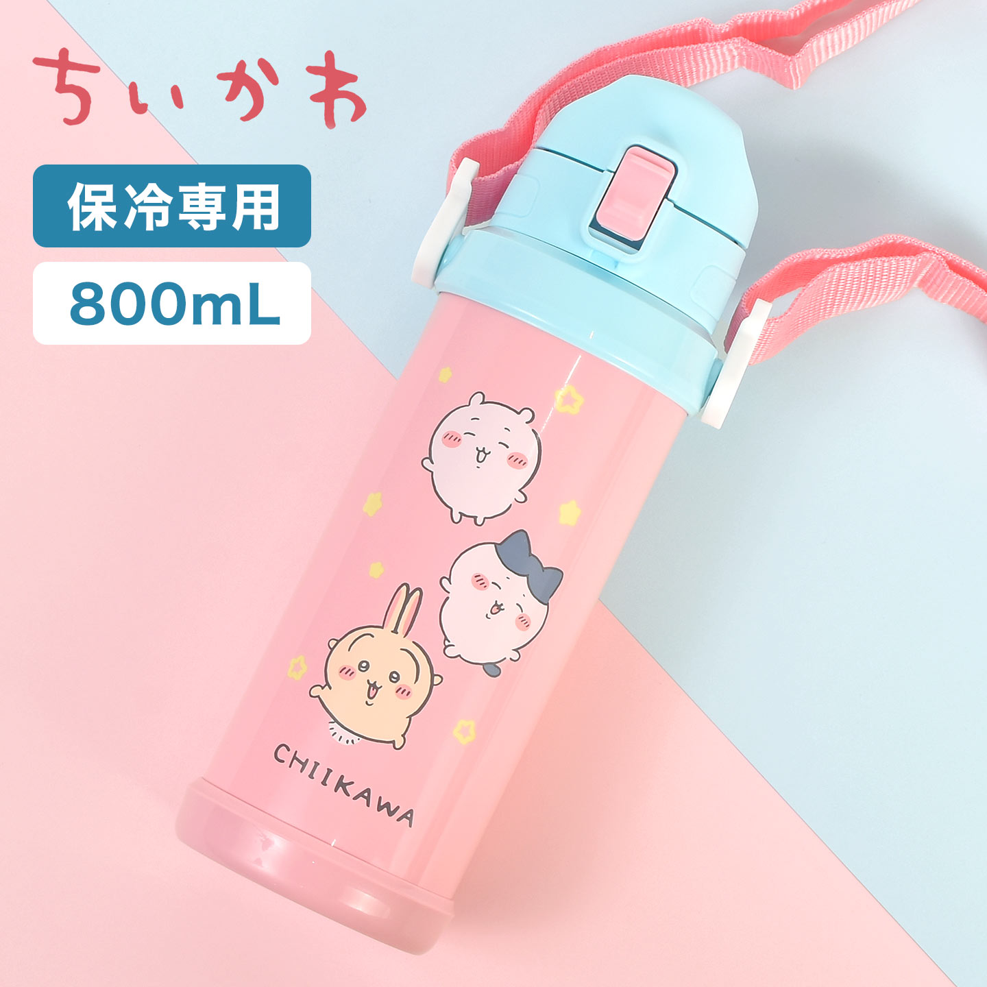 水筒 キッズ ちいかわ ハチワレ うさぎ ステンレスボトル 直飲み ワンタッチ 保冷 軽量 800ml 肩掛け ショルダー ストラップ付き 魔法瓶 ドリンクボトル 幼稚園 小学生 学校 通園 通学 大きい 軽い 女の子 キャラクター かわいい ピンク 水色