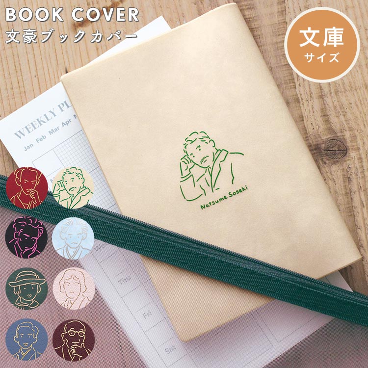 ブックカバー 文庫 おしゃれ かわいい a6 サイズ 文庫本カバー 文豪 グッズ 柄 シンプル 日本製 大人 学生 読書 通勤 通学 箔押し ワンポイント 太宰治 夏目漱石 芥川龍之介 江戸川乱歩 川端康成 中原中也 与謝野晶子 石川啄木 レディース 誕生日 プレゼント ギフト 文房具