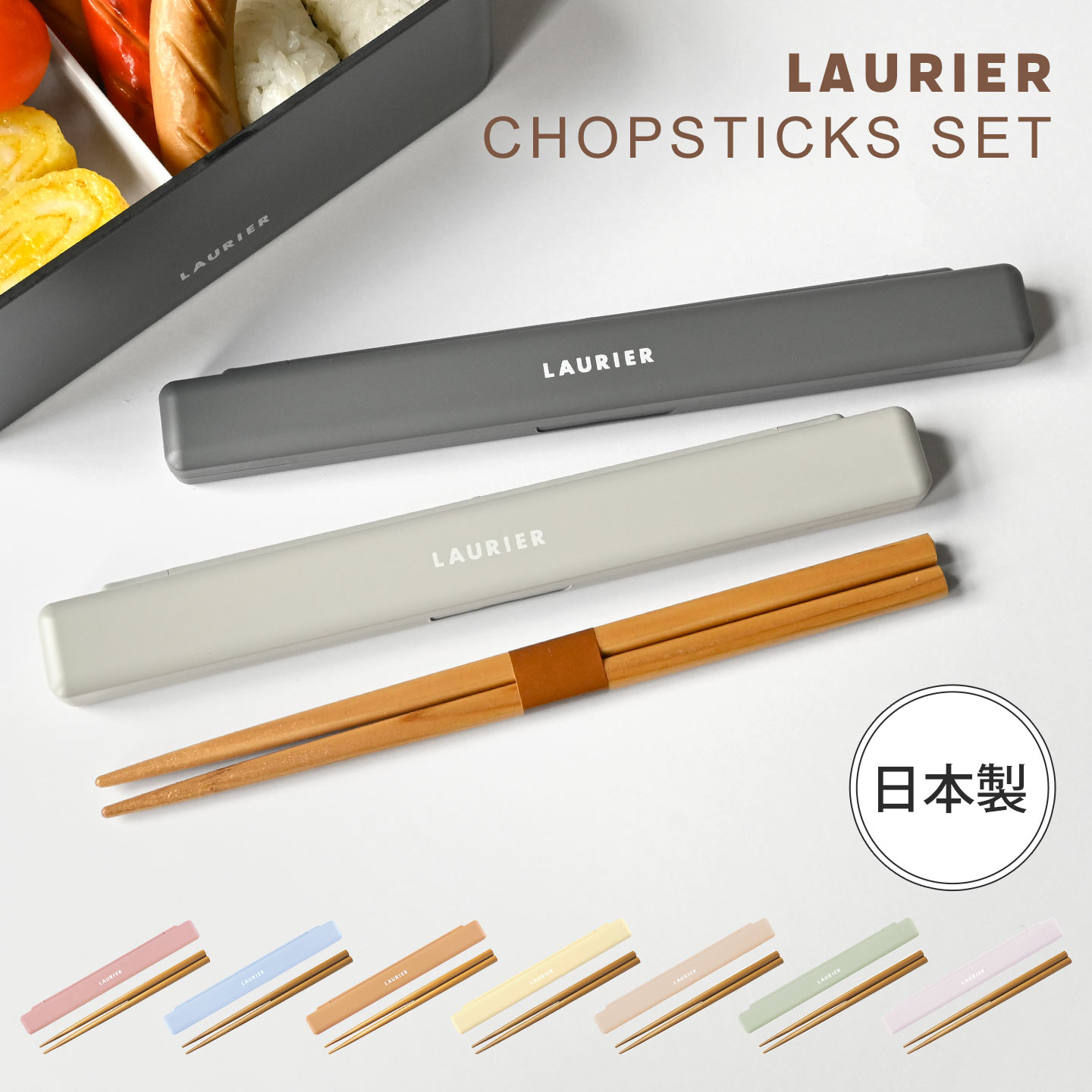 箸箱 セット 日本製 おしゃれ 大人用 子供 お箸セット おはしセット 18cm 箸ケース 箸入れ 弁当 木製 スリム コンパクト シンプル マット加工 ランチ LAURIER ローリエ かわいい 男女兼用 小学生 中学生 高校生 大学生 社会人 通学 通勤