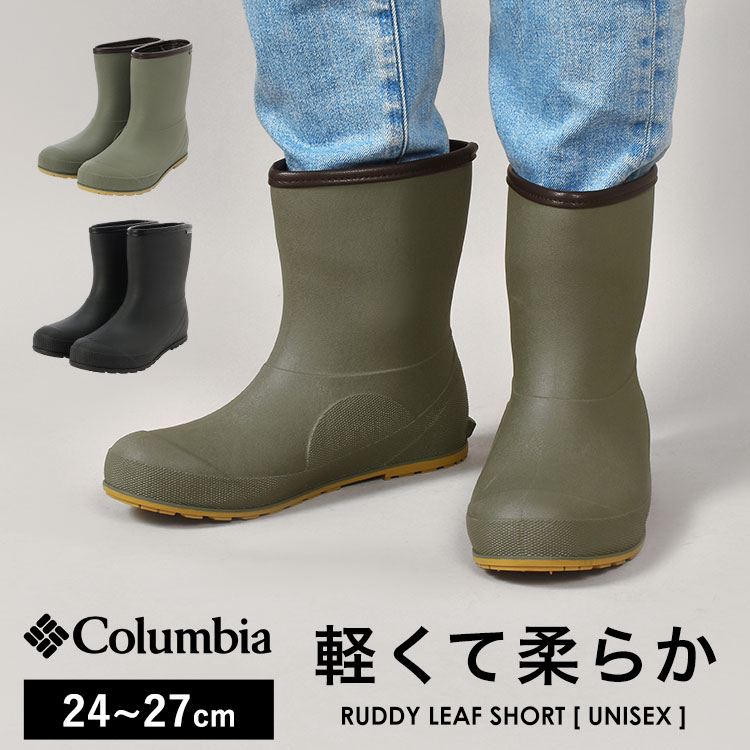 長靴 レインブーツ メンズ レディース コロンビア Columbia レインシューズ ラディーリーフ ショート 軽量 柔らかい 防水 長靴 ショート丈 ハーフ丈 24 25 26 27 cm アウトドア 通勤 通学 履きやすい 雨靴 雨 シューズ 靴 ブラック 黒 カーキ 農作業 ガーデニング EVA YU9049