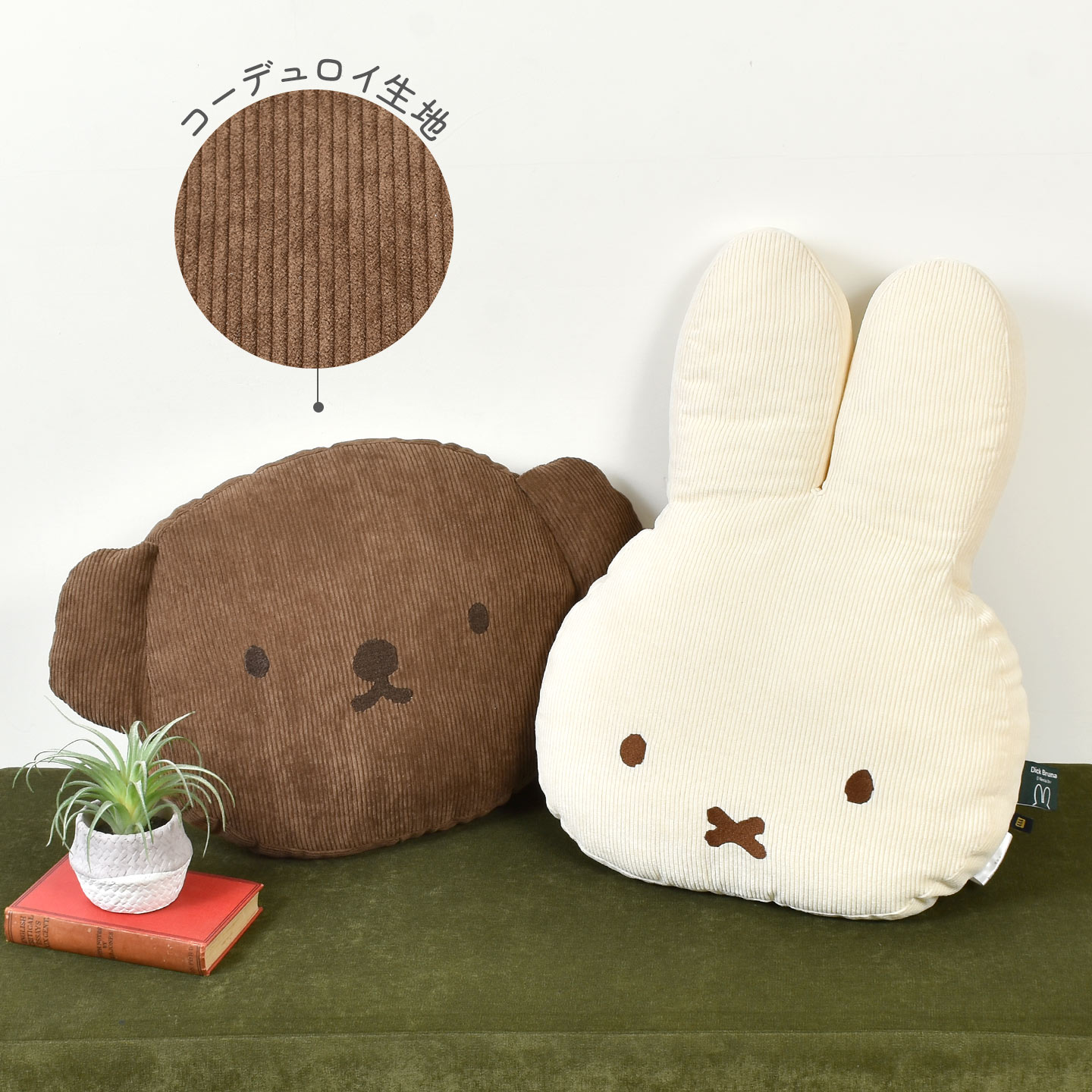 ミッフィーとボリスのお顔がカワイイ!コーデュロイ生地のダイカットクッション。お部屋に置いておくだけでも存在感があるデザイン。ミッフィー好きのお友達へのプレゼントにもオススメ!ラッピングの受付もしているので、プレゼント先にそのままお届けも可能です♪