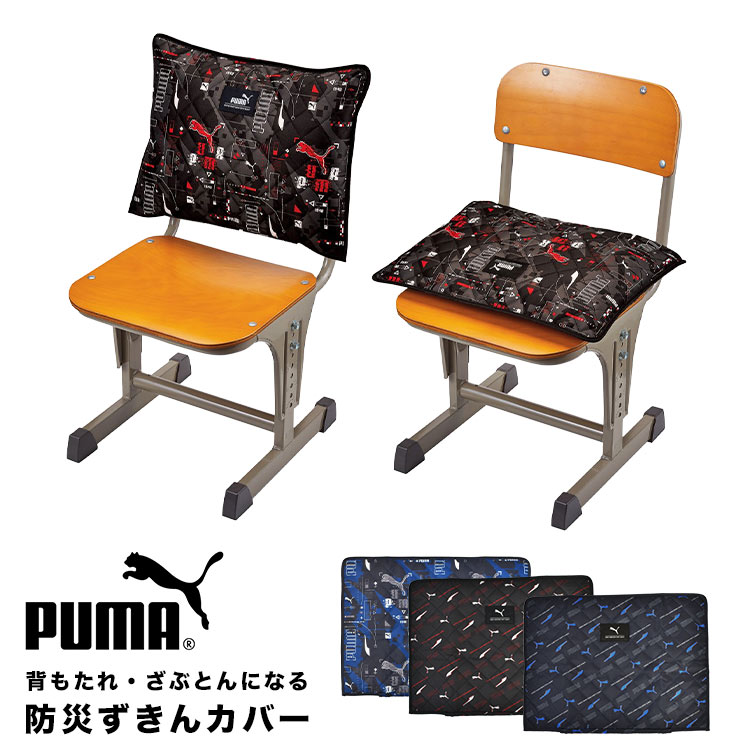 PUMA プーマ 防災頭巾 カバー PM421 PM534 小学生 幼稚園 保育園 小学校 キッズ 子供 男の子 背もたれ 座布団 クッション 防災ずきん キルティング 低学年 高学年 一年生 黒 ブラック ブルー ネイビー レッド スポーツ ブランド 防災グッズ 入園 入学準備 卒園 名前欄 災害