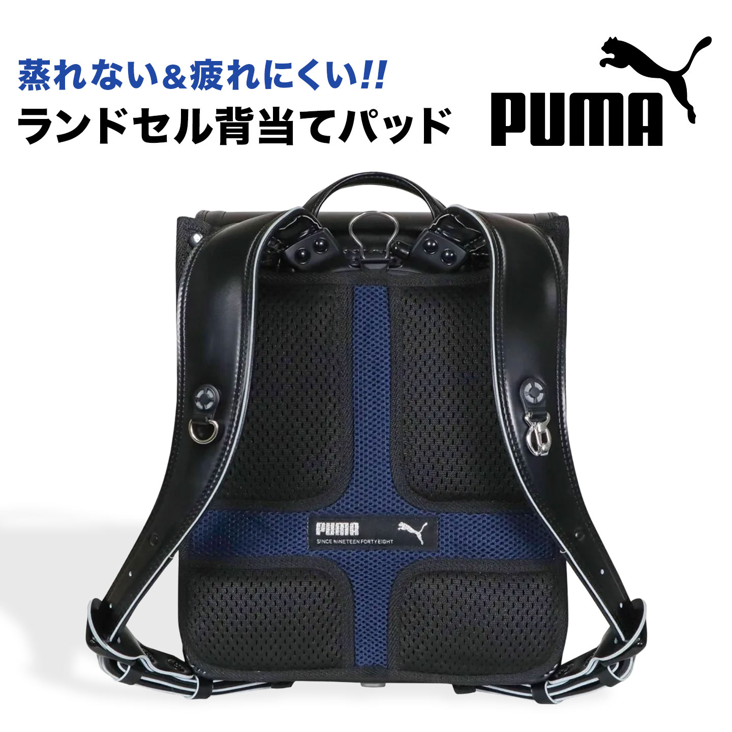 PUMA プーマ ランドセル用 メッシュ パッド 背中 小学生 小学校 男の子 キッズ 子供 ランドセルパッド 汗取りパッド 背当て パット クッション 通気性抜群 洗える 快適 肩 腰 負担軽減 蒸れない 蒸れ防止 疲れにくい 暑さ対策 通学 登下校 黒 ブラック ネイビー ブランド