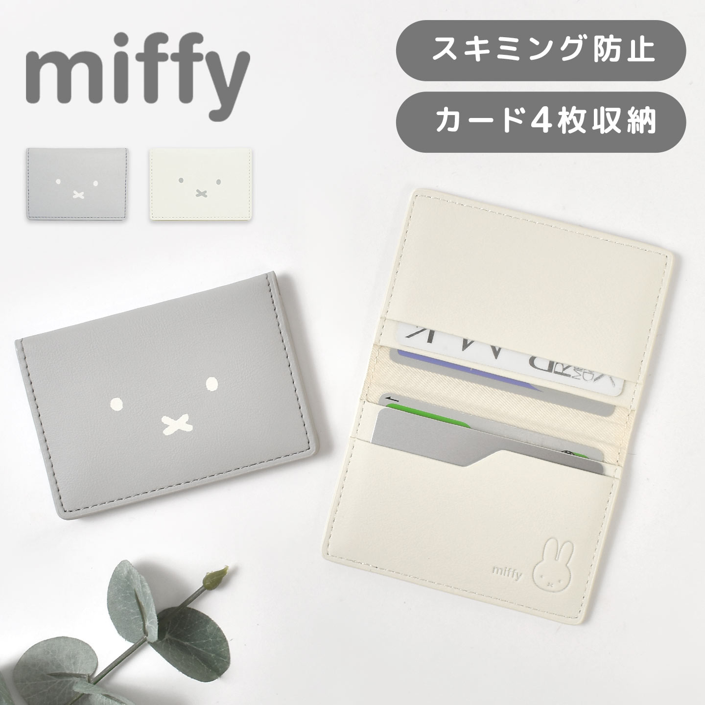 miffy ミッフィー カードケース フェイスシリーズ EB483 二つ折り スキミング 防止 キャラクター シンプル おしゃれ 薄型 スリム コンパクト 4枚 磁気 電波 遮断 個人情報 保護 パスケース 定期入れ レディース 大人 女性 通勤 通学 うさぎ 雑貨 アイボリー グレー