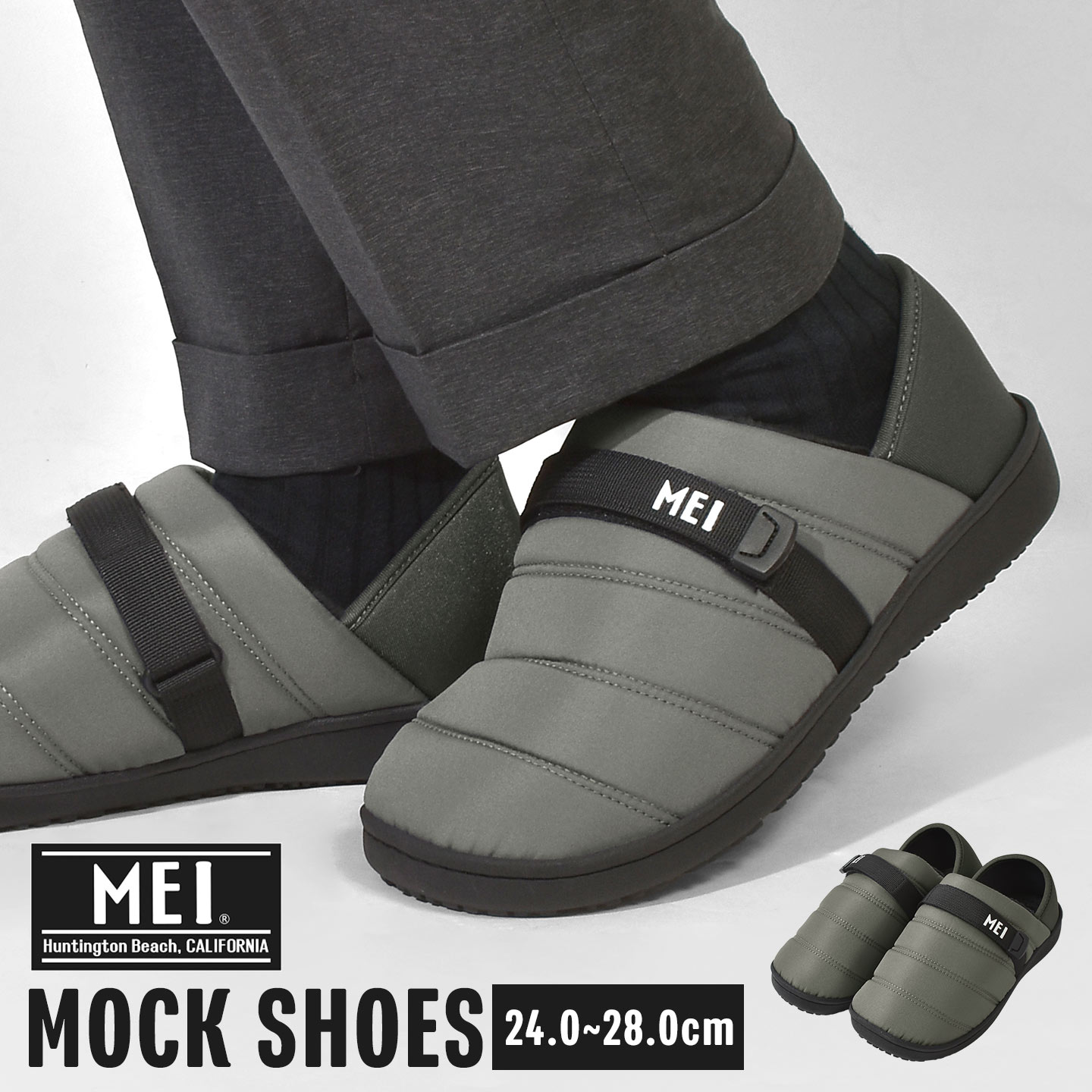 MEI モックシューズ メンズ レディース 24cm 25cm 26cm 27cm 28cm 軽量 スリッポン スリッパ ルームシューズ 室内履き キャンプシューズ アウトドア 冬 靴 おしゃれ キルティング もこもこ 暖かい 歩きやすい かかとつき かかとが踏める ブラック グレー 散歩 仕事 オフィス