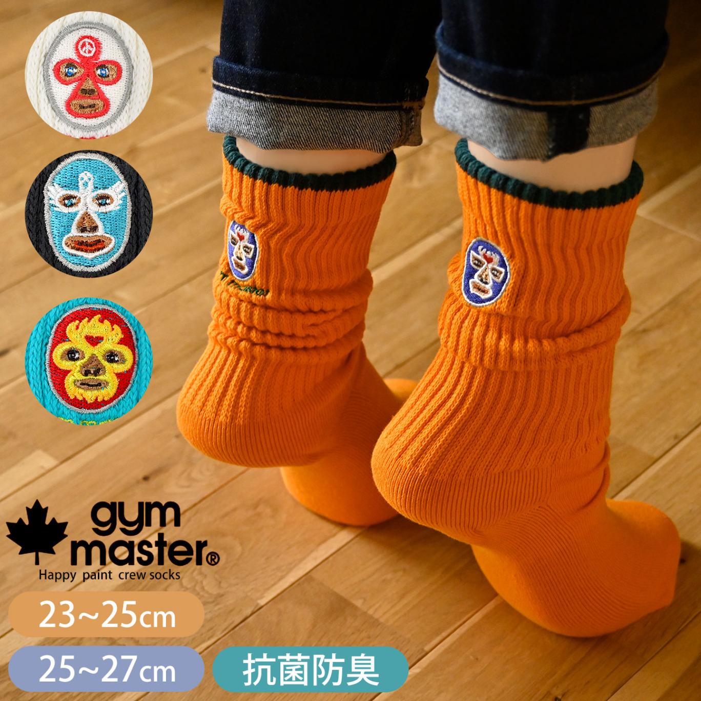 靴下 レディース メンズ gymmaster ジムマスター 抗菌 防臭 G666753 面白い おもしろ 柄 23-25cm 25-27cm クルーソックス ルーズソックス リブソックス くつ下 ブランド 刺繍 裏パイル 綿 おしゃれ 可愛い 大人 白 ホワイト チャコール グレー オレンジ 青 ターコイズ ブルー
