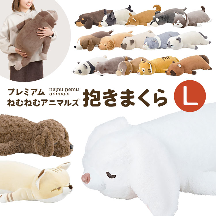 抱き枕 ぬいぐるみ ねむねむアニマルズ 抱きまくら 大きい アニマル Lサイズ かわいい キャラクター 女の子 もちもち 大きめ ふわふわ パンダ プードル ゴリラ ネコ くま 犬 うさぎ 柴犬 パグ 猫 ねこ チワワ ダックス 人形 プレゼント ギフト 誕生日 贈り物 子供 クリスマス
