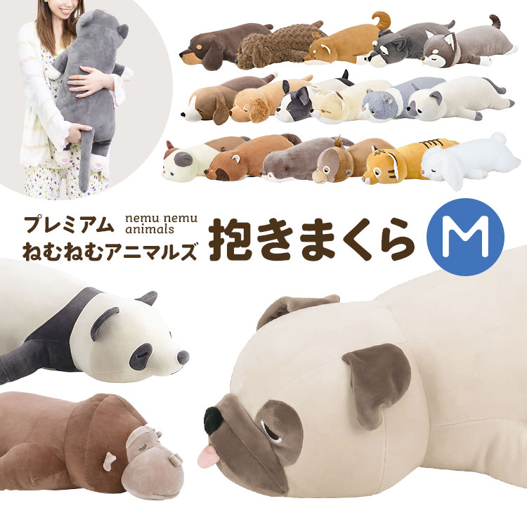 抱き枕 ぬいぐるみ ねむねむアニマルズ 抱きまくら 大きい アニマル mサイズ かわいい キャラクター 女の子 もちもち 大きめ ふわふわ パンダ プードル ゴリラ ネコ くま 犬 うさぎ 柴犬 パグ 猫 ねこ チワワ ダックス 人形 プレゼント ギフト 誕生日 贈り物 子供 クリスマス