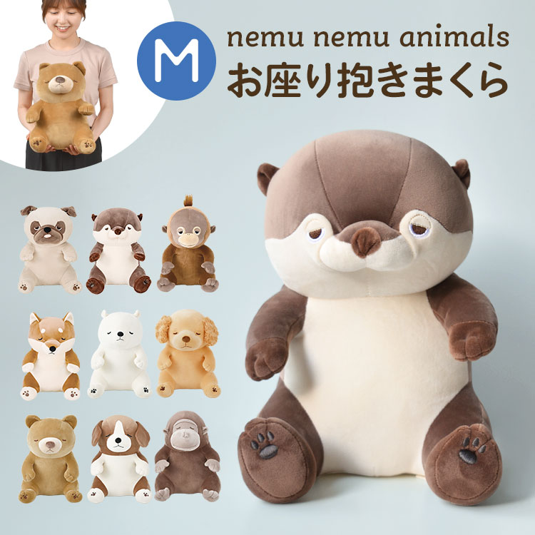 ぬいぐるみ お座り抱きまくら ねむねむアニマルズ プレミアム Mサイズ 猫 くま 犬 ふわふわ 人形 アニマル 抱き枕 かわいい クッション キャラクター 女の子 もちもち りぶはあと パグ ゴリラ カワウソ オラウータン 動物 インテリア 柔らかい 誕生日 子供 プレゼント