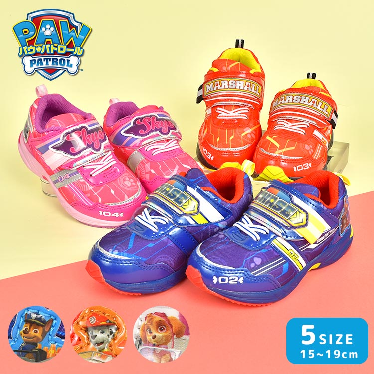 キッズ シューズ パウパトロール 男の子 女の子 ジュニア 靴 スニーカー 15 16 17 18 19 cm 子供 子ども 軽量 運動靴 やわらかい 軽い かわいい チェイス マーシャル スカイ ブルー レッド ピンク 孫 息子 娘 幼稚園 誕生日 プレゼント クリスマス 警察 消防 犬 いぬ 子犬