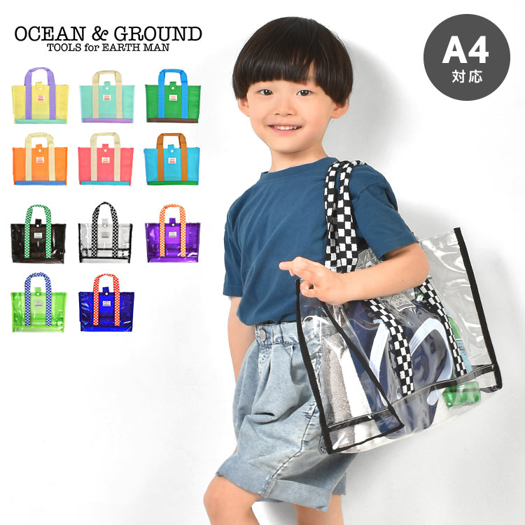 プールバッグ ocean & ground オーシャンアンドグラウンド ビニールバッグ トートバッグ 透けない 女の子 男の子 透明バッグ クリアバッグ A4 防水 撥水 小学校 小学生 幼稚園 保育園 子供 子ども 水泳バッグ スイミングバッグ おしゃれ バイカラー チェッカー 人気 夏 海