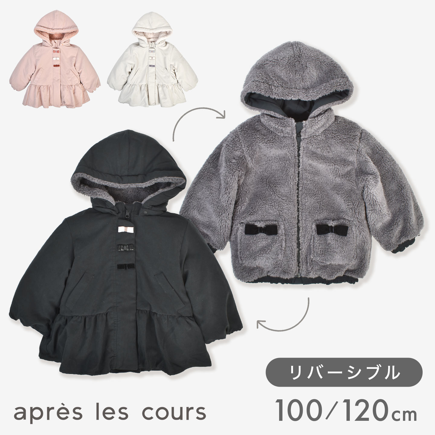 アウター キッズ 女の子 100cm 120cm かわいい アプレレクール apres les cours ペプラム リバーシブルアウター S501015 冬 防寒 ボア 中綿 フリル フード 取り外し ジャケット 子供 ブルゾン ダウン コート ピンク ブラック ホワイト おしゃれ 黒 白 ナチュラル FO エフオー