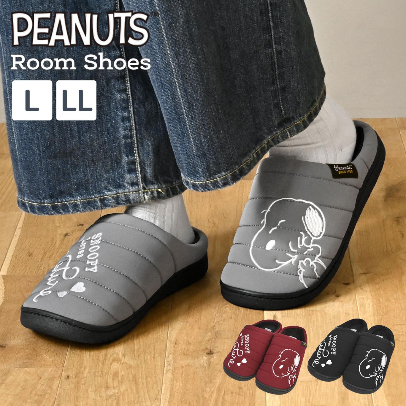 SNOOPY スヌーピー ルームシューズ 冬用 厚底 スリッパ レディース 軽量 滑り止め 防寒 あったか フリース ダウンルームシューズ L LL キャラクター おしゃれ カジュアル ブラック グレー ワイン レッド 女性 大人 プレゼント