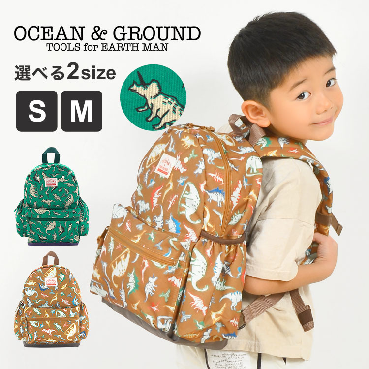 リュック キッズ 男の子 OCEAN&GROUND オーシャンアンドグラウンド ダイナソー 柄 恐竜 軽量 大きめ リュックサック 通園 10.5L 7L 緑 茶色 キッズリュックサック 1235101 チェストベルト 保育園 幼稚園 小学生 入園 入学 遠足 こども 子供 通学 おしゃれ 女の子 防