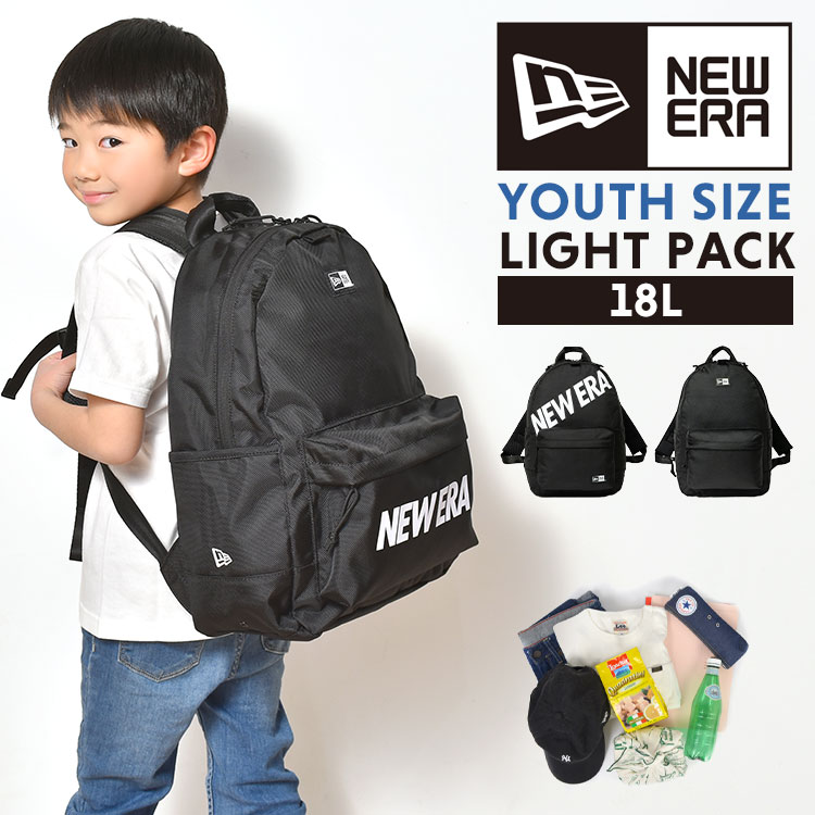 NEWERA キッズ リュック ニューエラ 14521293 14521292 男の子 子供 小学生 キッズリュック デイパック リュックサック ライトパック ブラック 黒 ストーン ブランド 大容量 A4 18L 大きめ 肩ずれ防止 無地 軽量 子ども こども 通園 通学 遠足 小学校 低学年 高学年 ジュニア