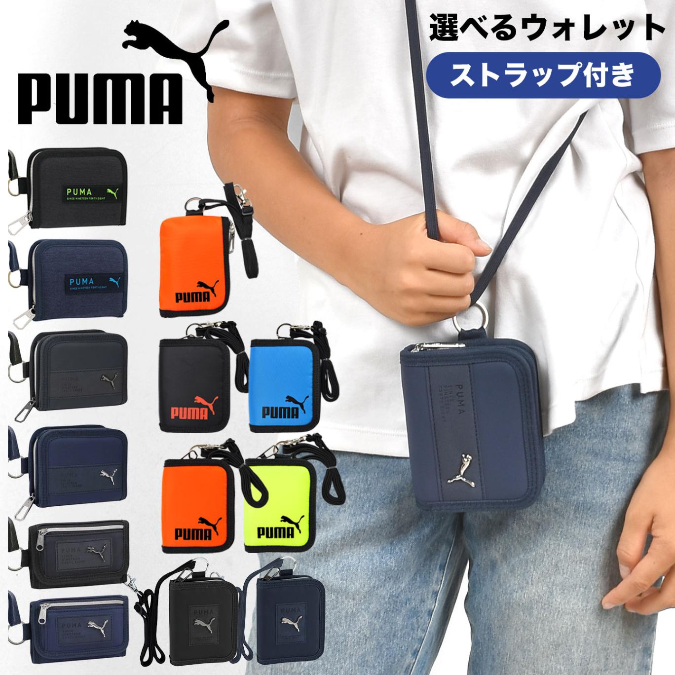 PUMA プーマ 財布 ウォレット 二つ折り 三つ折り ストラップ付き コンパクト コインケース 小銭入れ パスケース カードケース 男の子 キッズ ジュニア 男子 小学生 中学生 高校生 黒 ブラック 紺 ネイビー オレンジ イエロー ブルー スポーツ ブランド